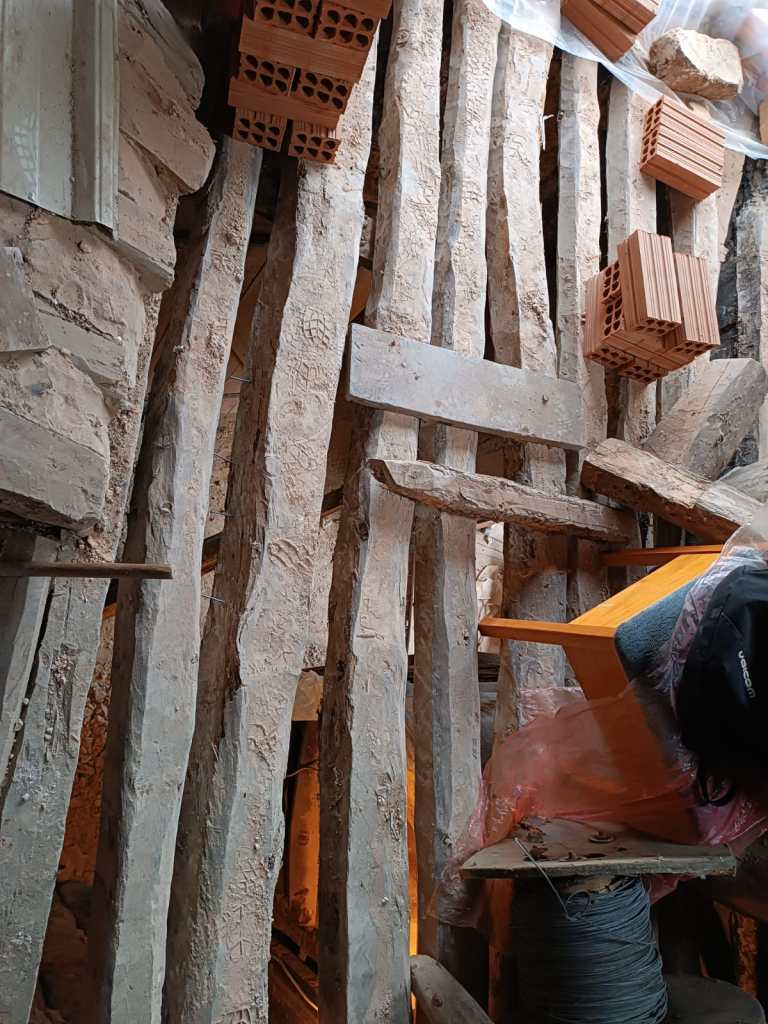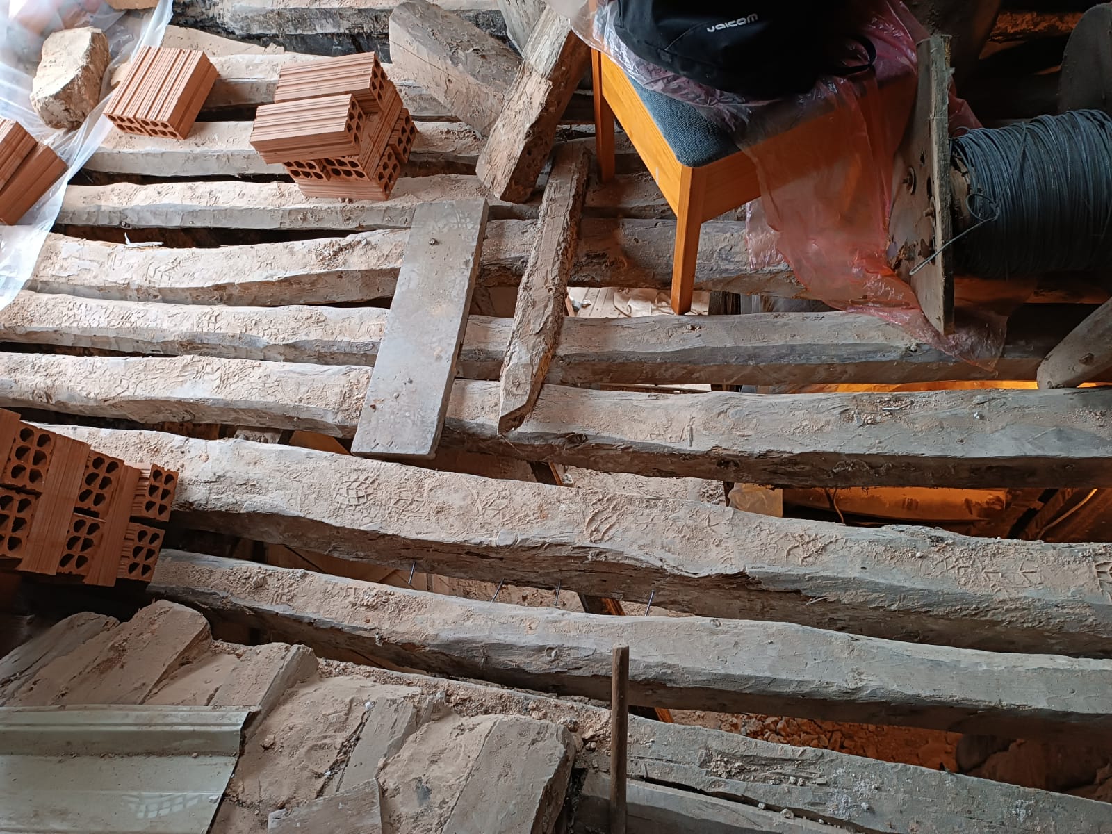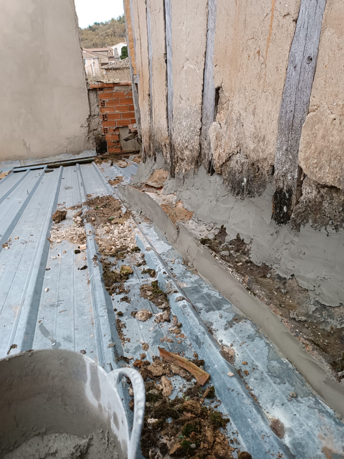 Todo el mortero del entresuelo fue retirado con la idea de aumentar los trabajos y con ellos el presupuesto necesario para la obra contratada. La pared derribada quedó sin levantar. Simplemente, no restauraron la casa sino que la destrozaron.