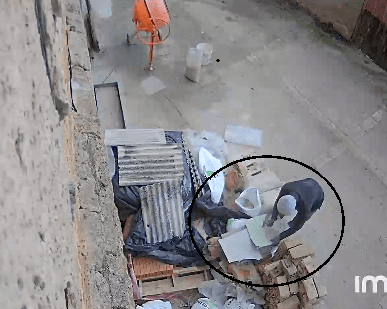Entre los escombros se encontró un pladur verde no procedente de la obra, el cual no se sabe como apareció. Las cámaras de seguridad fueron apagadas intencionadamente por lo que no se puede confirmar como ha llegado ese material hasta ahí. Se sospecha proceda de otra obra sin permisos para escombros y que el contratista trasladó hasta esta vivienda.